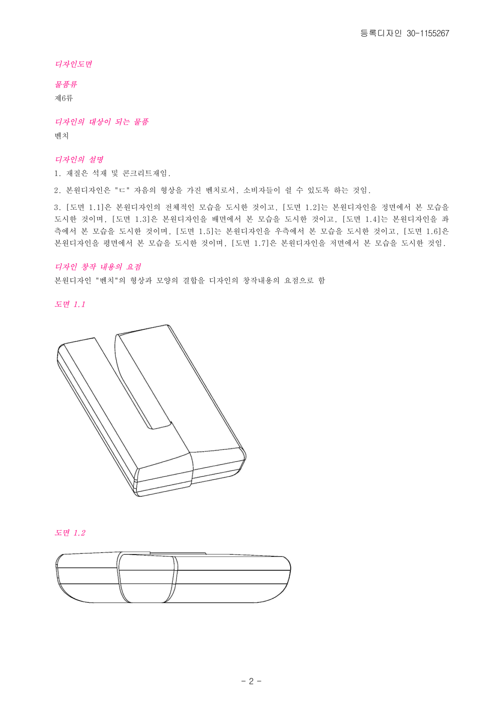 "ㄷ" 벤치 디자인 특허