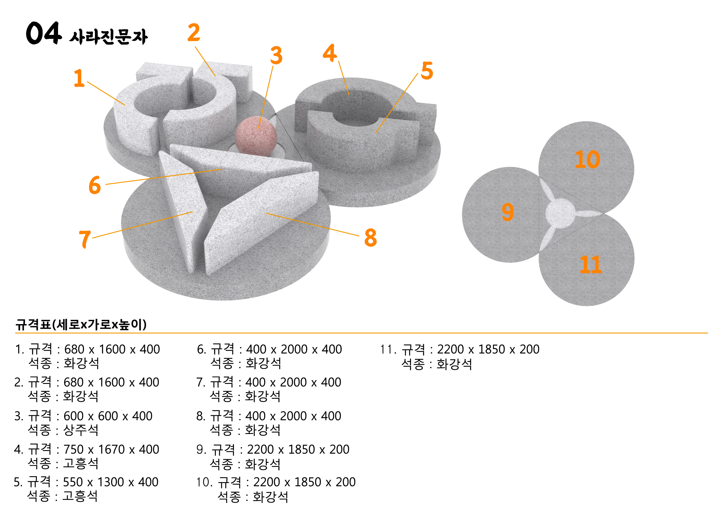 | 재질 | 보령석, 상주석, 익산석, 고흥석 |